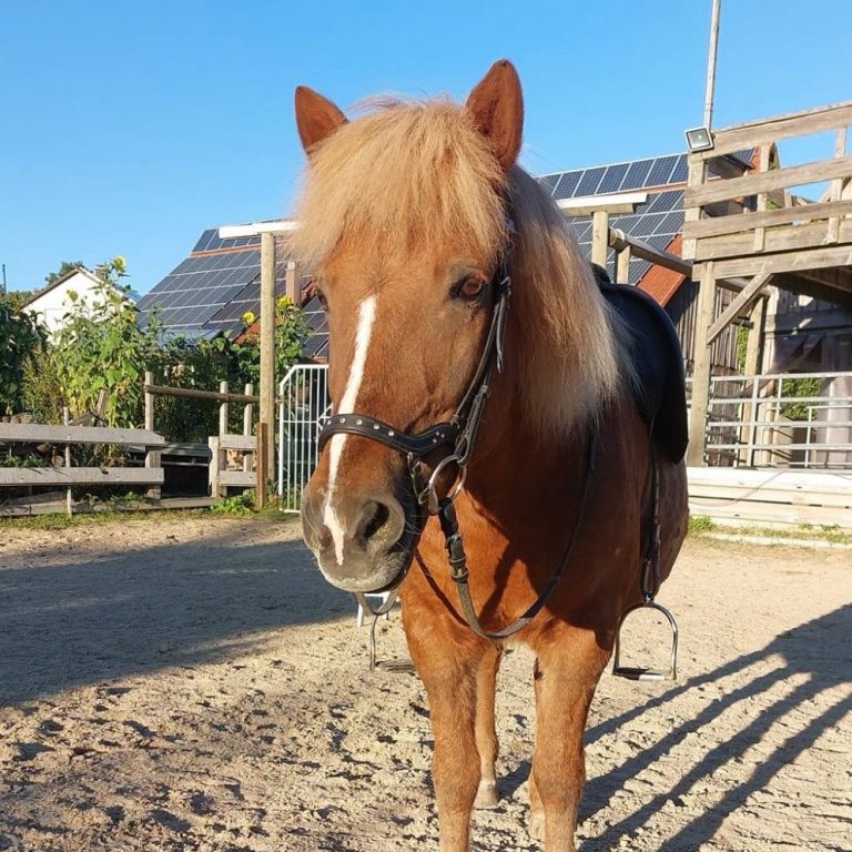 Harpa ist seit 2025 eine super Unterstützung für unser Team. Sie ist 2009 in Island geboren und unterstützt uns bei allem was gerade ansteht, ob bei unseren Reitknirpsen, Reitwichteln, Reitzwergen oder den fortgeschrittenen Reitern. Mit ihrer freundlichen, zuverlässigen und ruhigen Art ist sie ein super Allrounder für all unsere Reitschüler.